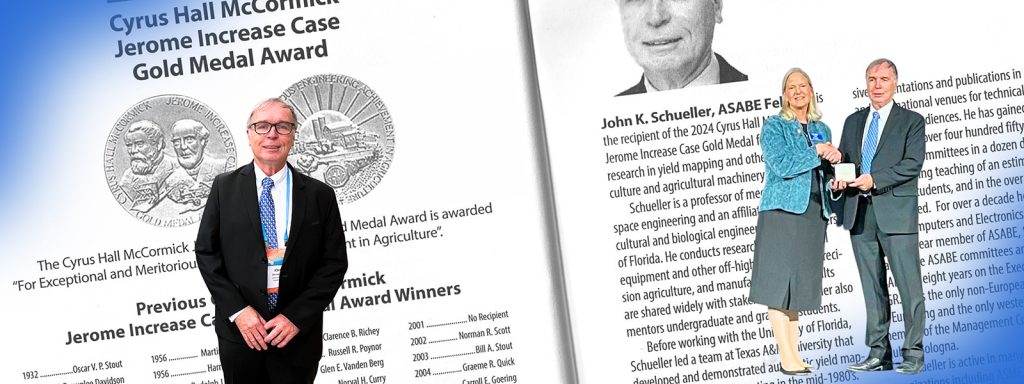 Professor John Schueller of the Department of Mechanical and Aerospace Engineering has been honored with the prestigious Cyrus Hall McCormick – Jerome Increase Case Gold Medal by the American Society of Agricultural and Biological Engineers. This esteemed award is presented annually to recognize exceptional and meritorious engineering achievements that have significantly advanced agriculture. Schueller’s groundbreaking contributions in engineering have led to innovative concepts, products, and processes that have notably enhanced agricultural development.