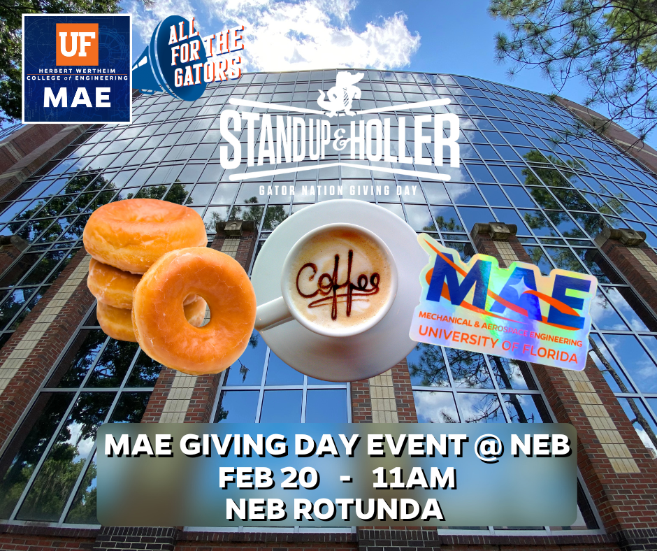 On February 20, the Gator Nation is coming together for Giving Day, and the Department of Mechanical and Aerospace Engineering is ready to make an impact! This year, we’re rallying support for the Engineering Building Renovation Fund, transforming spaces where Gator Engineers will innovate, collaborate, and shape the future.