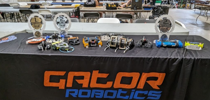 Here at Gator Robotics, we specialize in making battlebots / combat robots for competitions. We currently build 1lb, 3lb, and 12lb combat robots with the goal of making a 250lb battlebot. Members get great real-world experience in CAD design, simulation, mechanical engineering, machining, electrical work, and managing their own robot’s progression in competition. We mostly go to competitions in Florida but robots that are 3lbs and above get the chance to compete at Norwalk Havoc Robot League which has competitions in several states. If you are interested please join our discord and look for our next meeting there!